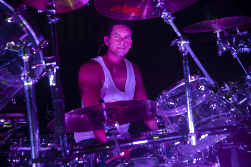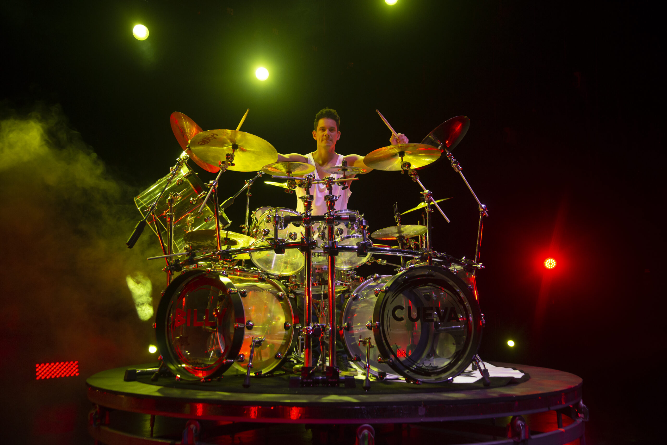 Billy explica que su batería es poco convencional, rodeándolo completamente y ajustándose al show que desea ofrecer. “Tengo percusión latina como timbales y congas, pero también todo ese ámbito del rock que tanto me gusta”, detalla, siendo su inspiración músicos como Ringo Starr y John Bonham. “Decidí tener esta batería para no ser solo un baterista solista, sino brindar un show visualmente impactante”.